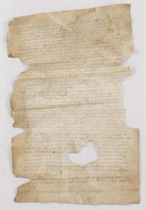 1351. MANUSCRITO : (GERONA-VENTA PERPETUA). VENTA PERPETUA DE UN TERRENO EN LA PARROQUIA DE FONTCOBERTA. Manuscrito sobre pergamino. 49 x 32 cm.