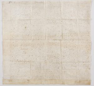 1542-1557. MANUSCRITO : (PERGAMINO). TESTAMENTO COMPLETO DE JEHAN DE CHASTELER Y SU ESPOSA GILLES DE HARCHIES. Manuscrito sobre pergamino de 65 x 68 cm. Dado en julio de 1542 y vuelto a fechar en 22 de enero de 1557.