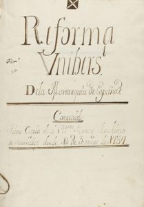 [1] Universal Reforma de que necesita la España para volver a ser la madre y la maestra del Universo Mundo. 17 h. Una fecha dentro del texto ´12 de febrero de 1757´.