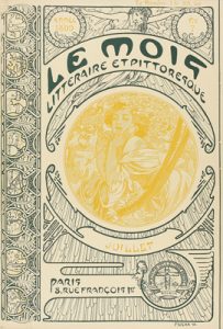 A. Mucha diseñó la cabecera que se utilizó en cada número, donde se reflejaba en una orla lateral la temática que abordaba la revista y un precioso motivo central monocromático, diferente en cada entrega.
