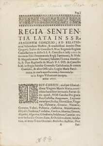 • REGIA SENTENTIA LATA IN S. S. R. ARAGONUM CONCILIO, AD RELATIONEM ADMODUM...