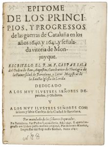 Primera edición de esta relación de los principales hechos de la guerra dels segadors en Cataluña.