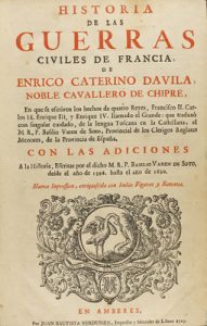 1713. LIBRO : (HISTORIA-FRANCIA). DAVILA, ENRICO CATERINO: HISTORIA DE LAS GUERRA CIVILES DE FRANCIA... en que se escriven los hechos de quatro Reyes, Francisco II. Carlos IX. Enrique III. y Enrique IV. Con las adiciones a la Historia, escritas...