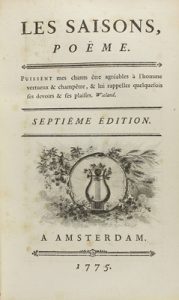 1775. LIBRO : (LITERATURA). [SAINT LAMBERT, JEAN FRANÇOIS: ]. LES SAISONS. POËME. Amsterdam : S. imp., 1775. 4º menor. 467 p. y 7 grabados, fuera del texto.