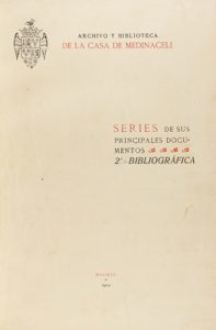 1915. LIBRO : ARCHIVO Y BIBLIOTECA DE LA CASA DE MEDINACELO. SERIES DE SUS PRINCIPALES DOCUMENTOS. 1º HISTORICA. 2ª BIBLIOGRAFICA. Madrid : Imp. Alemana, 1915. 2 vols. en 4º mayor.