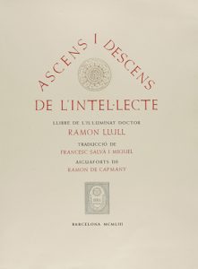 1953. LIBRO : (BIBLIOFILIA). LLULL, RAMON ; CAPMANY: ASCENS I DESCENS DE L`INTEL.LECTE. Trad. Francesc Salvà i Miquel. Aiguaforts de Ramon de CAPMANY. Barcelona : Hora LUEN ; Sabadell : tallers Joan Sallent, 1953. Folio. 175 p., 12 h.