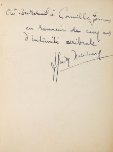 MICHAUX Henry. LES RÊVES ET LA JAMBE. Essai philosophique et littéraire. Anvers, Ça Ira, 1923. In-16 carré, plein veau noir, plats ornés d’un décor abstrait en simili crocodile épidermé, doublures et gardes de daim gris, tête dorée,...