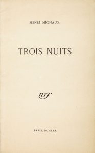 MICHAUX Henri. TROIS NUITS. Paris, N. R. F., 1930. Plaquette in-8 brochée, chemise titrée, étui.