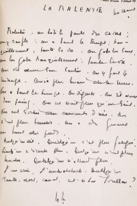 L’EXEMPLAIRE EST ENRICHI D’UNE PAGE MANUSCRITE à l’encre monogrammée par l’auteur, au format de l’ouvrage, un feuillet in-16 relié en tête face au premier paragraphe dont ce texte autographe est le premier jet.