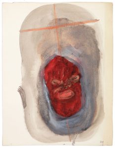 UN DES 30 PREMIERS EXEMPLAIRES SUR NORMANDY VELLUM comportant UNE GOUACHE ORIGINALE SUR FOND BLANC SIGNÉE PAR MICHAUX DE SON MONOGRAMME, et portant au verso UN ENVOI AUTOGRAPHE signé au Dr André Varay, médecin d’Henri Michaux.