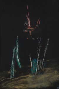 Gouache originale sur papier noir monogrammée en bas à droite au recto par Henri Michaux représentant cinq personnages.