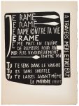Rapide en effet il le fallait ; Michaux nous avait bien prévenus : si nous n’allions pas vite, le poème, lui, irait plus vite que nous et se retournerait contre nous… je pus assez vite graver tous les éléments n nécessaires à l’édification de la maquette complète. Une nuit d’automne 1948 je rentrai à mon atelier pour tirer les deux dernières pages… deux heures plus tard je me réveillai avec une congestion pulmonaire…un mois de lit… le temps de revoir la maquette… avec retouche des planches par Aline Gagnaire à qui j’avais passé la main, et je rechutai…. tout ratait ; le papier n’allait pas, l’encre bouchait tout … et la couverture… M. Nicolas, habile technicien du bois, maudissait tous les essais : le contreplaqué… se tordait dans tous les sens, réfractaire aux inscriptions cloutées et aux patines nombreuses auxquelles René Drouin le soumettait… Aline et Nicolas eurent l’idée de tirer la planche de titre sur le bois même, à l’encre noire, et de fixer par-dessus une projection de gros clous de sabots comme s’ils avaient été violemment lancés à poignée, ou bien comme aurait pu faire une charge de grosse mitraille à bout portant. Mais le contreplaqué se comportait de plus en plus mal. Un matin, René Drouin s’énerve, saute dans un taxi et file dans je ne sais quel dépôt de banlieue où il acquiert sur l’heure un énorme tronc de bois de corail….