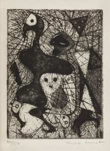 Envoi autographe sur la couverture, illustrée d’une composition que l’auteur a rageusement biffée, elle est en fait de Pierre Bettencourt : ARRIVER À SE RÉVEILLER et ensuite arriver à ne pas voir cette tête de je ne sais qui sur cette couverture. Amicalement A Maurice Saillet Son nouveau voisin H Michaux