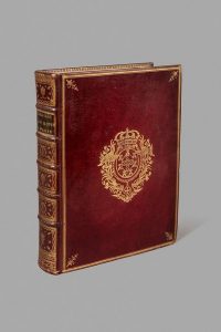 TRES BEL EXEMPLAIRE, EN GRAND PAPIER, AUX GRANDES ARMES DE MARIE I (1734-1816), REINE DU PORTUGAL ET DES ALGARVES dès 1777, dans une élégante reliure en maroquin dont on remarquera la richesse du décor du dos.
