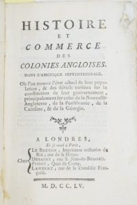 Édition originale de cet ouvrage estimé et important pour l’étude du commerce des colonies britanniques à l’aube de la Guerre de Sept Ans (1756-1763).