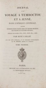 CAILLIÉ (René). Journal d’un voyage à Temboctou et à Jenné, dans l’Afrique centrale, précédé d’observations faites chez les Maures Braknas, les Nalous et d’autres peuples ; pendant les années 1824, 1825, 1826, 1827, 1828. Paris,...