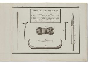 Édition originale, ornée de 11 cartes et d’une planche montrant des objets, outils et instruments des habitants de Port-Praslin, à la côte des Arsacides (îles Salomon).