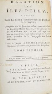 KEATE (George). Relation des îles Pelew, situées dans la partie occidentale de l’océan Pacifique ; Composée sur les journaux et les communications du Capitaine Henri Wilson, et de quelques-uns de ses Officiers, qui, en août 1783, y ont fait...