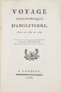 [LA COSTE (de)]. Voyage philosophique d’Angleterre, Fait en 1783 et 1784. Londres, s.n., 1786. 2 volumes in-8, broché, non rogné, couverture de l’époque.