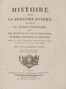 [LEBOUCHER (Odet-Julien)]. Histoire de la dernière guerre, entre la Grande-Bretagne, et les États-Unis de l’Amérique, la France, l’Espagne et la Hollande, depuis son commencement en 1775, jusqu’à sa fin en 1783. Paris, Brocas, 1787. In-4,...