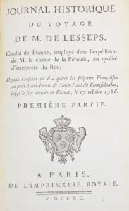 Jean-Baptiste Barthélemy de Lesseps (1766-1834) faisait partie de l’expédition de Lapérouse. En septembre 1787, lors d’une escale au Kamtchatka, Lapérouse lui confia des cartes, des dessins, ainsi qu’une partie des journaux de l’expédition, et le chargea de les rapporter à Versailles.