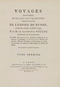 Récit du second voyage entrepris par Pierre-Simon Pallas (1741-1811) en Russie, lequel le mena des steppes de la Volga jusqu’à la Crimée en passant par les contrées bordant la mer Caspienne et la chaîne du Caucase.