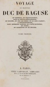 Édition originale, ornée d’un portrait du duc de Raguse, de 8 cartes dépliantes et de 12 planches de vues des principaux endroits visités par l’auteur.