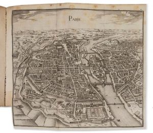 Édition originale, peu commune, ornée d’une carte dépliante de la France et d’un plan dépliant de Paris offrant une jolie vue à vol d’oiseau de la capitale.