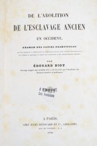 BIOT (Édouard). De l’abolition de l’esclavage ancien en Occident. Examen des causes principales qui ont concouru à l’extinction de l’esclavage ancien dans l’Europe occidentale et de l’époque à laquelle ce grand fait historique a...