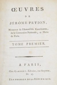 PÉTION de VILLENEUVE (Jérôme). Œuvres. Paris, Garnery, L’An premier [- deuxième] de la République. 4 volumes in-8, demi-basane bleu nuit, dos à nerfs, non rogné (Reliure moderne).