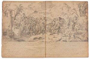 Il est enrichi d’une carte de Saint-Domingue dessinée au crayon et de 18 dessins originaux reproduisant des portraits et des scènes historiques d’après des gravures du XVIIIe siècle.