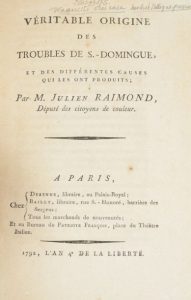 SAINT-DOMINGUE. — RAIMOND (Julien). Véritable origine des troubles de S.-Domingue, et des différentes causes qui les ont produits. Paris, Desenne, Bailly, Et au Bureau du Patriote françois, 1792. — Réflexions sur les véritables causes des...