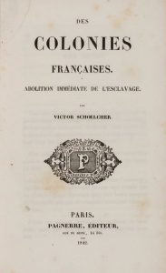 SCHOELCHER (Victor). Des colonies françaises. Abolition immédiate de l’esclavage. Paris, Pagnerre, 1842. In-8, demi-chagrin vert, dos lisse orné de fers rocaille, tranches mouchetées (Reliure de l’époque).
