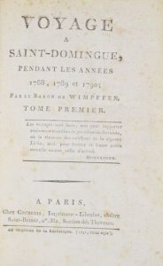 Édition originale, ornée d’un grand tableau dépliant (t. II, p. 52) donnant le nombre de nègres par chefs-lieux et quartiers ou paroisses.