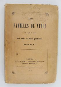 BRETAGNE - VITRÉ. Les grandes familles de Vitré de 1400 à 1789 par M. Ed. F**** Rennes, Plihon, 1877. In-8 broché de 162 pp. dont les tables .