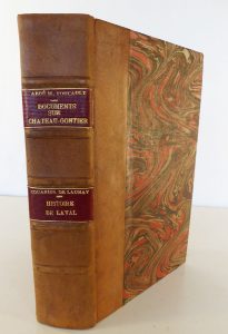 MAYENNE - Abbé M.FOUCAULT. Documents de Château-Gontier, première baronnie de la province d'Anjou. 292 pp. Laval, Chailland, 1883. 2 parties en un vol. fort in-8, ½ veau ép., dos à nerfs, p. de titre et tomaison en mar. bordeaux.