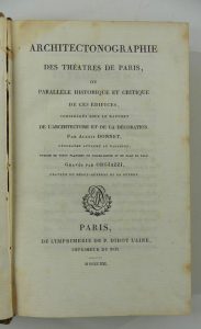 PARIS - Théâtres - DONNET (Alexis). Architectonographie des théâtres de Paris, ou Parallèle historique et critique de ces édifices, considérés sous le rapport de l'architecture et de la décoration. Paris, Didot l'aîné, 1821. In-8 de...