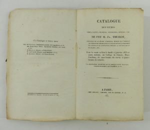 BIBLIOGRAPHIE - Catalogue de livres.. Catalogue des livres grecs, latins, français, allemands, anglais, etc. de feu M. Fr. THUROT... dont la vente se fera le lundi 14 janvier 1833... au Collège de France... Paris, Leblanc, 1832. In-8 broché,...