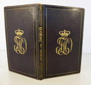 encadrment de filets dorés sur les plats ornés en leur centre du chiffre du Prince Ferdinand d'Orléans.