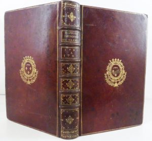 Grand in-4 de 39,5 X 25 cm, maroquin bordeaux époque, dos à nerfs orné de fleurons dorés, plats aux armes de Louis-Philippe-Joseph d'Orléans dit Philippe-Egalité, Duc d'Orléans (1747-1793), Premier Prince de sang et père du Roi Louis-Philippe 1er.