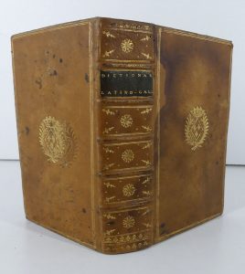 SOPHIE (Aux armes de Madame) & Dictionarium. Dictionnarium universale latino-gallicum ... Parisiis, Rondet et Labottière - de Hansy, 1750. Fort in-8, maroquin citron, dos à nerfs orné de fleurons dorés, triples encadrements de filets dorés...