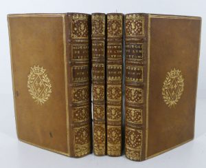 Dentelles intérieures et tranches dorées. 3 coins supérieurs brûlés au tome III sans toucher au texte sinon beaux exemplaires.