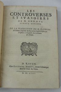 SÉNÈQUE. Les contreverses et suasoires de M. Annaeus Seneca, rheteur. De la traduction de M. Mathieu de Chaluet, conseiller du Roy en son Conseil d'Estat et président és enqueste du parlement de Tholose. Rouen, Estienne Vereul, 1618. Grand...