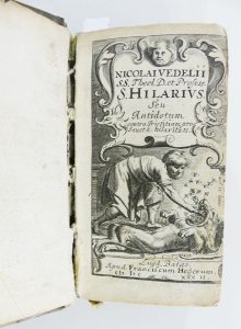 VEDELIUS (Nicolai). S.HILARIUS seu antidotum contra tristitiam pro sancta Hilaritate. Lug. batavorum (La Haye), sn, 1632. Suivi dans le même ouvrage de :" Panacea apostasiae..." Genève, 1629. In-16, velin à rabats ép. dos lisse au titre...