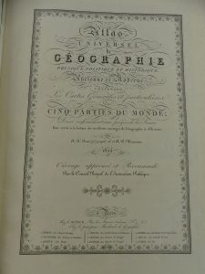Feuillets de titre et de table gravés, 2 pp. de texte, 36 belles cartes gravées sur double page et aux contours rehaussés (les planches 18 et 19 - Carte de France - sont assemblées, avec qqs. petites déchirures aux pliures, restaurées, sans manque) + reliée in fine, 1 carte supplémentaire de la Régence d'Alger par Dufour, 1840 (légt jaunie).