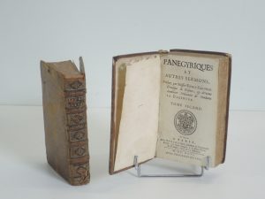 PANEGYRIQUES ET AUTRES SERMONS. PRECHES PAR E .FLECHIER EVEQUE DE NIMES, ANISSON 1693. 2 tomes, préface, table, 402, 513 p. PLEINE BAS, TITRE SUR PIECE, DOS ORNE. LE TOME 2 EST ABIME.
