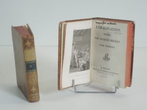 L'IMAGINATION, POEMES DE JACQUES DELILLE, PARIS, GIGUET ET MICHAUD 1806. 2 vol in12, 2 frontispices, xxxviii, 276, 279 p. PLEINE BAS RACINEE, TITRE ET TOMAISON SUR PIECE, DOS ORNE. UNE COIFFE ARASEE, EPIDERMURES.