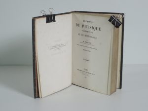 ELEMENTS DE PHYSIQUE EXPERIMENTALE ET DE METEOROLOGIE par M. POUILLET, HACHETTE 1856. 49 PLANCHES SUR DOUBLE PAGE. DEMI BAS, TITRE OR ET DOS FILETE, EPIDERMURES.