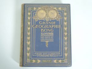 GRANDE GEOGRAPHIE DE BONG ILLUSTREE, sous la direction d'ONESIME RECLUS, MAISON D'EDITION BONG, PARIS 1911. TOME 1 LES PAYS ET LES PEUPLES. NOMBREUSES ILLUSTRATIONS. In folio, viii, 371 p. CARTONNAGE EDITEUR EN PLEINE TOILE, DOS ET PLAT RICHEMENT...