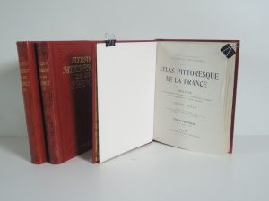 ATLAS PITTORESQUE DE LA FRANCE, tome 1, AIN-EURE ET LOIRE, tome 2, FINISTERE-NORD, tome 3, OISE-YONNE. PARIS, ATTINGER FRERES EDITEUR, sd. 3 vol in folio. Reliure éditeur, demi chag, plats et dos ornes.